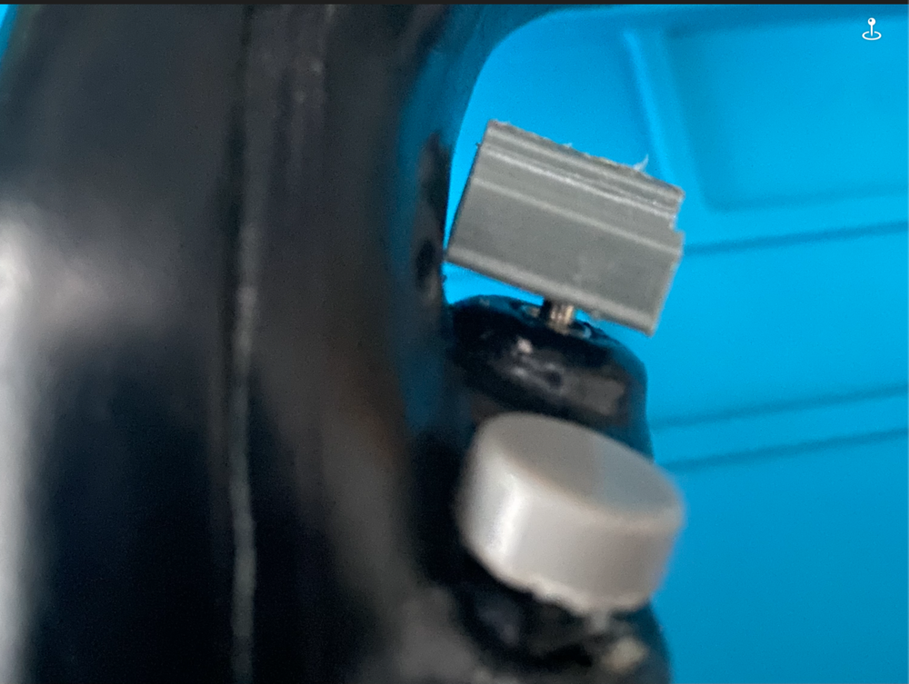 I opened up the holes in the collective and made these small switch mounts. This way I could solder them up before fitting. Also as they have a lip and are fitted from the outside there is no chance of them being being dislodged and falling inside. The exception was the joystick switch. I made a cage up for this and welded it with some surplus 3D filament and soldering iron, followed by a healthy dob of hot glue. -