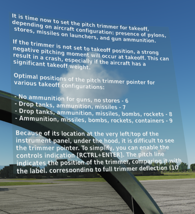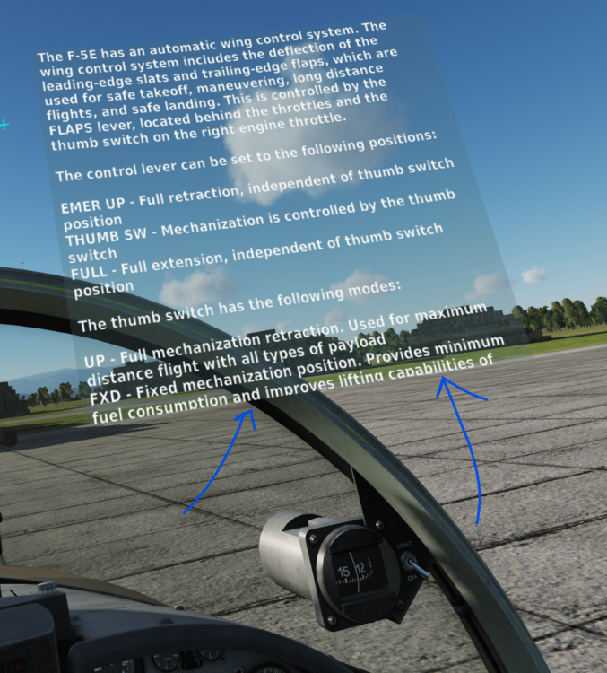 Hi, I am barely few days old noob in world of DCS. I am going over the tutorial #1 for F-5E but I can not figure out when the tutorial text is not fully shown in VR. The images are shown below. Thanks, -spacefox