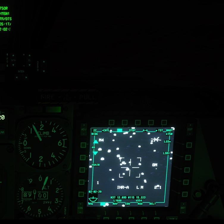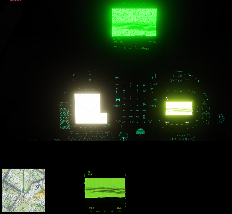 Did a test in latest OB / Repaired / Shaders deleted / Latest NVIDIA driver with regards to readability of in cockpit displays in aircraft with map displays and optical / IR viewing systems. To demonstrate the difference in the in cockpit display and the exported view of the same display. First image is DCS using both my monitors as one screen (no export ) using windows extended display. The top half of the A-10C MFCD is my 40inch phillips 4k screen and the bottom half is my dell 22inch touch (just image a line the horizontally through the a10c MFCD screen - just cant see it) there is a little difference in glare due to the 2 monitors being different, but still pretty close Second image is when I am using DCS multimonitor support to export the A10c cockpit screens to my dell 22inch - and the difference is significant - this is what I have been ranting about. This issue affects the primary monitor TAD display, and TGP output in BHOT / WHOT modes This is from the A10c instant action mission night flight. cheers.. hope you guys get this one fixed. Third image is from the Harrier in a custom night mission, showing the map and NavFLir views including through the HUD. once again the glare washout to the primary monitor is significant, but the export to the second monitor is just fine Fourth image is hornet at night, with MAV-F on left DDI, AMPCD is ok (not shown) and ground map suffers the same glare issue. also demonstrated is the export font and line issue specific to the hornet (a display issue still ) export display, extremely blurry. A problem which does not exist in the other aircraft. Fifth image show Mav F looking at different terrain, interestingly mountains and grass can be seen, distant terrain has limited visibility or none on primary display and is easily viewable on the export mav display. TGP glare washout suffer the same fate has the other jets prior. Sixth image is viper, showing TGP glare, bug otherwise dim exports as per other reports. So no idea what is going on here dcs.log