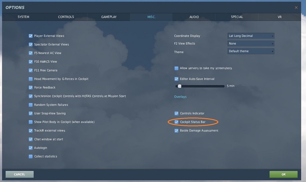 Game 2.7; it's not there but there is a "cockpit visual recom" in gameplay. Is that it? -