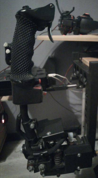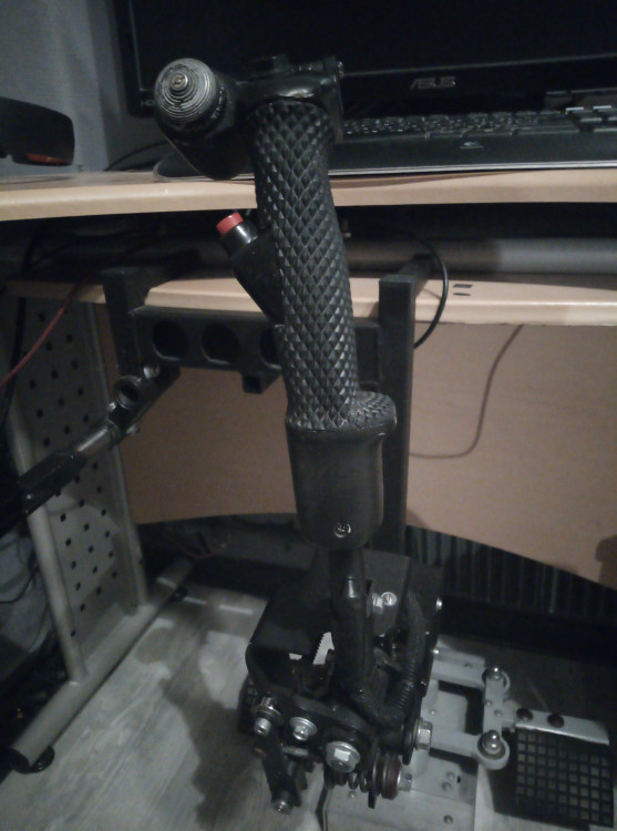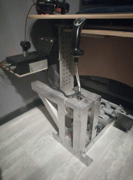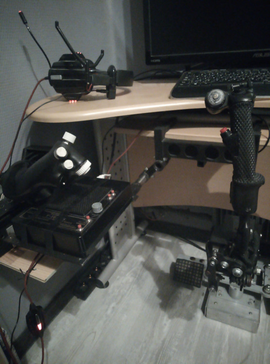 Выставляю на продажу свой моноблок от hotas_su с эргономичной репликой ручки KG-13. Полностью металлическая механика. Уникальная система загруза позволяет менять усилие "на лету". Ручка может регулироваться по углу и немного по высоте. Регулируемая в нескольких плоскостях подставка под РУД. На РУСе пять кнопок(вместе с гашеткой), один фиксируемый тумблер, авиационная хатка. Электроника Ардуино и датчики ТЛЕ. Работает на Win10. Крепление к столу струбциной. Установлены "кулачки" с мягким центром, в комплекте "кулачки" с более выраженным центром. Цена 27 тысяч. Москва. Пересылка за счёт покупателя.