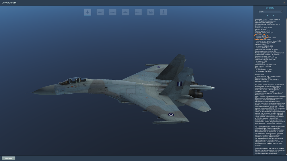 убедите меня не на пустом основании. что су-27 реализован верно. все источники пишут цифры озвученные выше. даже ваш продукт это пишет.а теперь неожиданно для меня высняется. что масса выше на полторы тонны. как так? почемк? "сс" для комп. игры никто не даст.