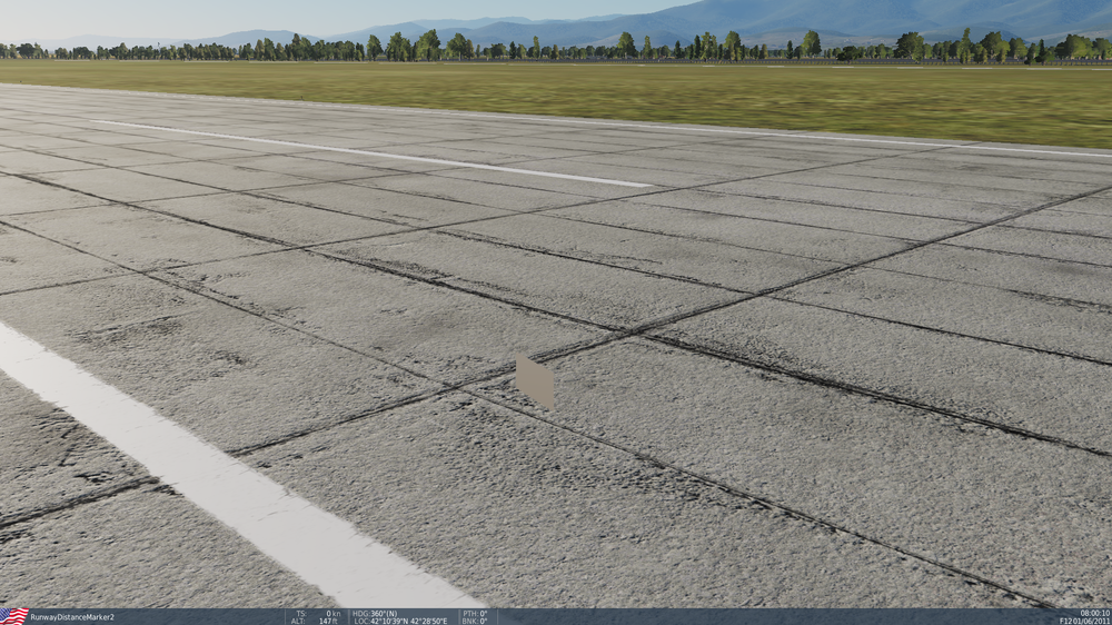 Runway Distance Remaining Markers Updated 23/08/2020 - Initial Release // This mod pack adds runway distance markers for four airfields (see changelog below) into DCS. Only some airfields have them by default and cannot really be seen. The models have no collision to players or AI. Try not to place them too close as during testing AI sometimes thinks the runway is blocked but place them where they can be seen by the player. They have been tested and working in VR. // Airfields currently included: -Added Incirlik AB Runway Markers -Added Kutaisi Runway Markers -Added Nellis AFB Runway Markers -Added Al Dhafra AB Runway Markers // Installation Place the folder “5VFWRunwayDistanceMarkers” into: C:\Users\your_name\SavedGames\DCS.openbeta\Mods\Tech\ User files download https://www.digitalcombatsimulator.c...files/3311952/ Static templates for the markers https://forums.eagle.ru/showthread.php?t=284162