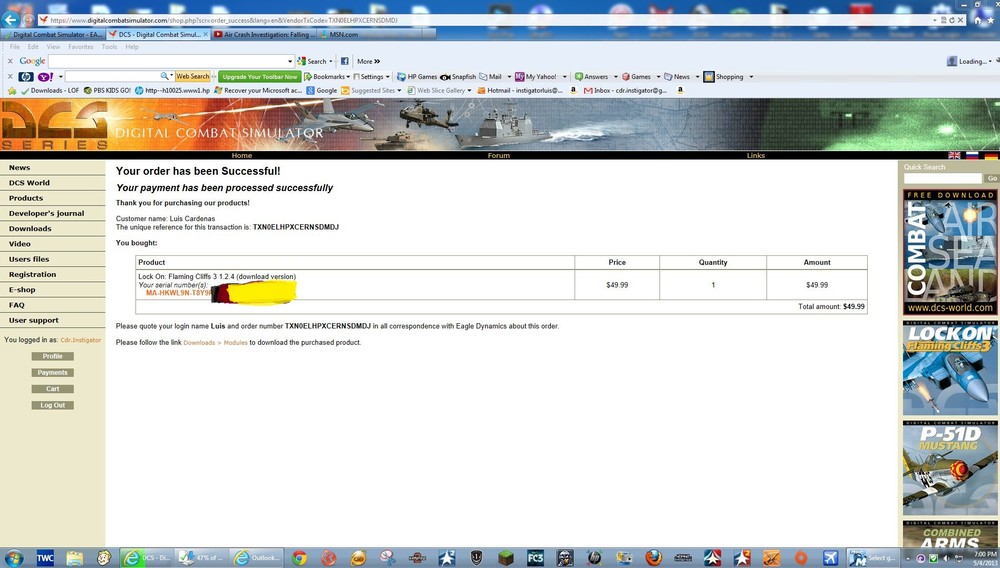 Ok, I found it under licensing... my bad. My apologies to everyone. So, it shows it is still activated. I'm about to receive a new computer with all the bells and whistles needed to run DCS and I was just trying to find my serial # and such. Found my error. Got everything squared away.. Thanks guys! -