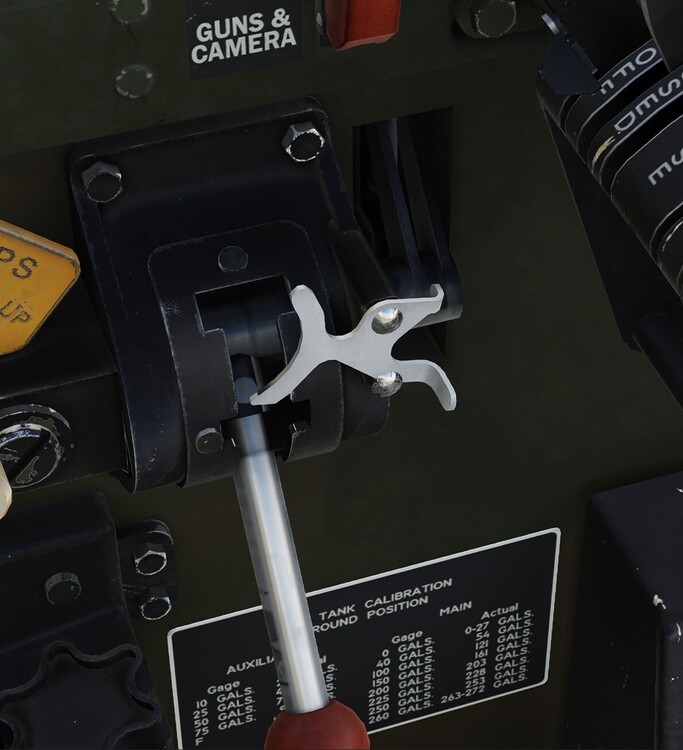 P-47 is my favorite among WW2-era planes in DCS and I want to believe that one day, preferably while I'm still alive, ED will continue fixing and improving it, that's why I keep submitting this stuff. So, here's some more issues: 1) Throttle cables are clipping through opened CRF switch cover: Here's the photo from N-model manual showing cables position with throttle full forward And this photo shows CRF switch positioned closer to the wall, slightly behind prop governor mode selector box ---------------------------------------------------------------------------------------------------------------------------- 2) Oil dilution switch OFF position is too high (looks closer to "center" position, which this switch lacks): ----------------------------------------------------------------------------------------------------------------------------- 3) Gear lever safety latch lacks it's spring and possibly positioned incorrectly above neutral lever position (and lacks a small detent for movement restricting screw): Also, note K-14 gunsight control panel aft of the flaps lever and CRF flaps switch size and position. -------------------------------------------------------------------------------------------------------------------------------------------- 4) Controls locking mechanism is missing entirely