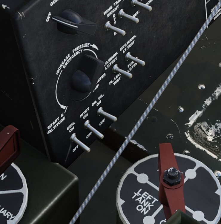 Here's the old report marked as "correct as is". There are some examples, both from real manuals and museum planes, of intercooler and oil cooler shutter indicators being placed near their corresponding switches (unlike they are in game right now). The thing is, if they are just swapped around, the modelling will still be somewhat incorrect since those indicators are supposed to be mechanically linked to the shutter doors/mechanism, and currently, judging by the position of connecting rods (or, more likely, wires, since in-game those are thin and bent), the bottom indicator is linked to the intercooler and the top one - to oil cooler shutters.