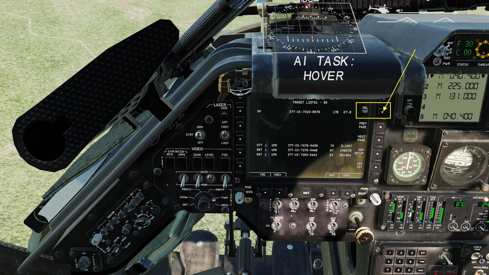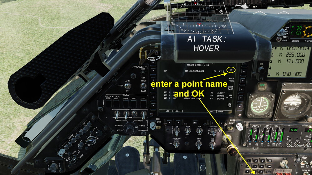 To delete an unnecessary point, you need to go to the HSD page (Nav Setup-(Target list/ WP List or CP List). Press the DEL button, enter the point name, and press the OK button on the keyboard at the bottom of the console. After that, the point is removed from the MMS tables.