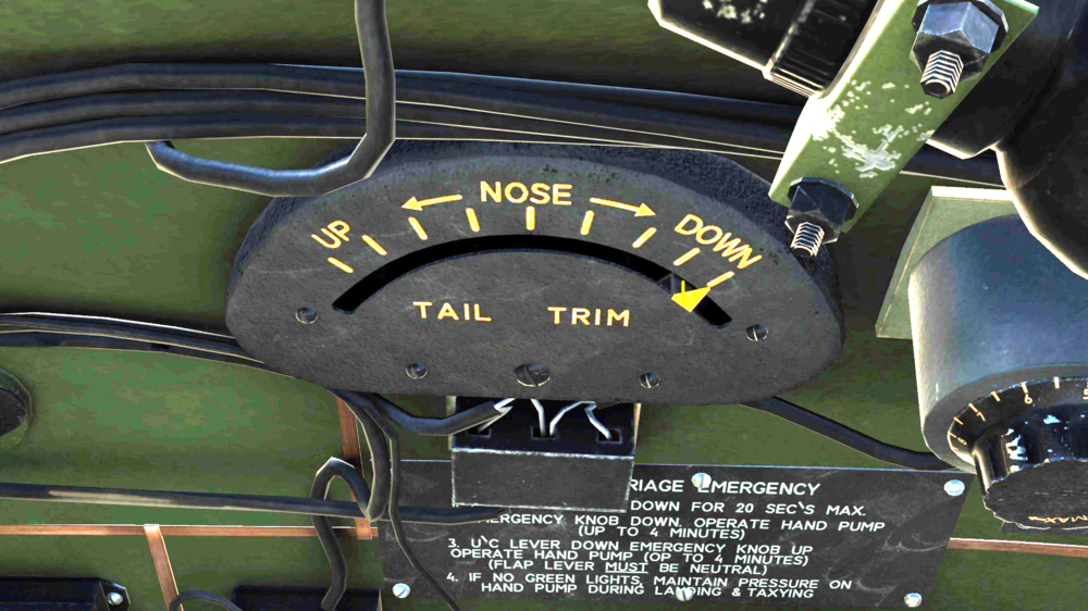 This graph shows exactly the trim you need to fly the plane in typical full loaded condition LANDING GEAR UP. As we have the plane from WWII, it must fly in accordance to the direction documents and tests relevant to this time, right? -