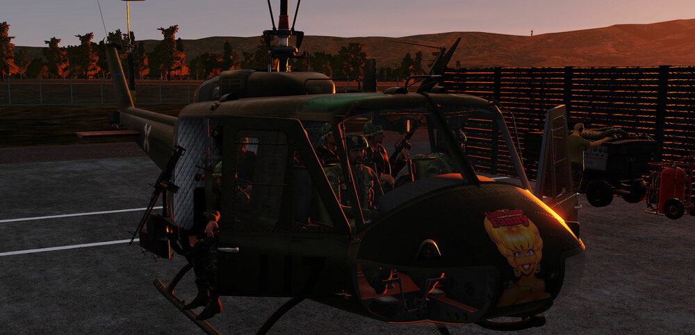 @Presidium (Peace time Military Member 1976-1980) This is my Favorite Post EVER ha ha ha THANK YOU. I LOVE 14.) and 17.) I always had a P-38 in my Front Left Pocket to share. LOL You're so fun. 2nd Fav pick 16.) & 25.) How is Your Project Coming? I'm working on a small single player Nam mission. I can't say it will ever hit the public because I am using Mods in this mission (Not sure people would want to deal with that) The best ground mod Items to give that Huey base war time look. The Army Infantry Mod in the back of the Huey you can see. I found a spot on the Caucasus map that fits my map like region of the Vietnam area around the Da-Nang area (Best I could find in DCS It fits well) Take off from Da Nang Field next to the Ocean with a little bay and Crossover the 1st mountain range into a valley with another mountain range Parallel to each other with a few Mountain passes that lead into Laos for a trip into the A Shau Valley for troop drop off and pickups and hit and run missions In the first valley I have built a FFB I named "Fire Base Gloria" to run Supplies and or troops to during battles The Pictures I see online of the area fit well for this area on the map it's mood inspiring when I fly it. Hesco protection walls around your Huey. Mission starts with a cold start and the Song All along the Watch Tower by Jimmy Hendrix. I have figured out how to have Troop Trucks setting in front of each Heli pad Hesco spots. That Pull away and every time you return the trucks will return to the spot for more troop drop offs or pick ups then pull away. (cool effect) I have ground chatter looped on the FM radio when turned on. A flight of F-4 Phantoms pull out of bunkers and taxit out to the runway in front of you and take off as you are starting up. Got all kinds of stuff busting into my brain maybe a Aircraft carrier just off shore of the base. for a big ground battle in the A Shau Valley. Lol I'm rambling on sorry. I can't turn it off. -