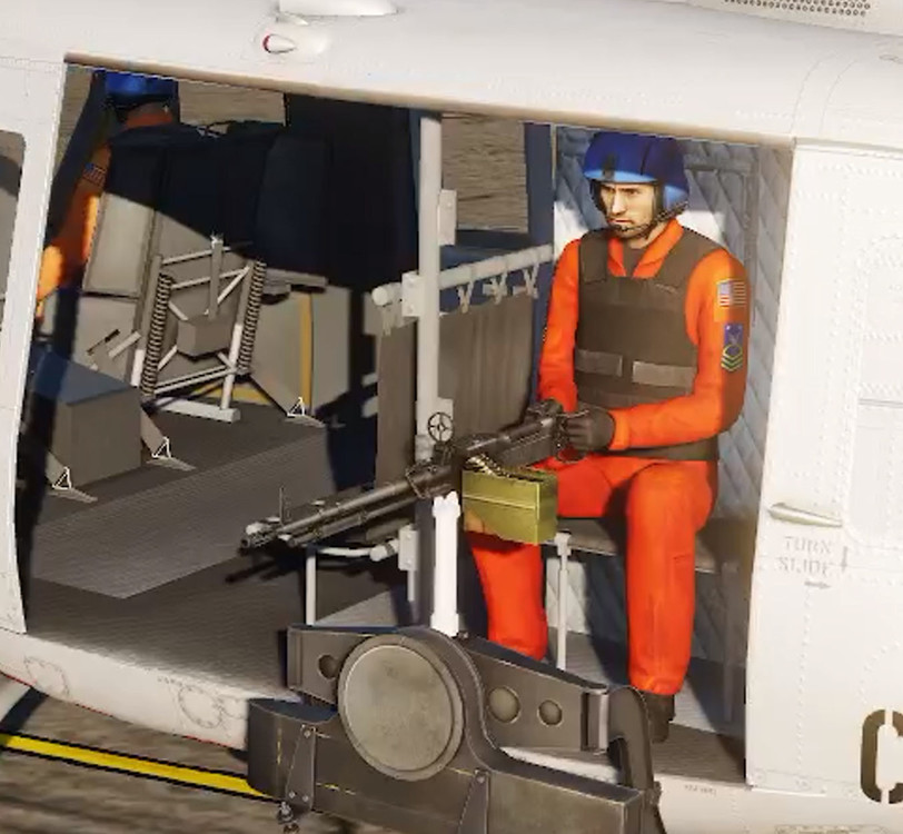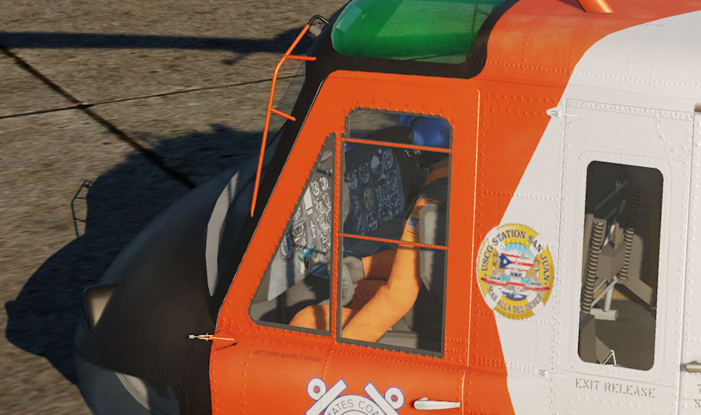 Update on the Skin for my Single player mission with this skin. All Black Interior. No more OD Green for My Coast Guard Huey. All black Seats and Harness's up front. Custom Dash inside Panel With Bob's Girlfriend taped to the Dash and Unit sticker. This was hard for me to figure out but I did it using the Model Viewer. The only smart move I've made without needing help with. Honest this view outside in of the Dash with the stickers on it will not show up till you edit the file then us the description lua file to load it right. {"ab212_int_panel", DIFFUSE , "uh1_int", false}; I have a custom name for this uh1_int file but not shown here {"ab212_int_white", DIFFUSE , "uh1_int", false}; {"ab212_int_green", DIFFUSE , "uh1_int", false}; That made the uh1_int.dds edited file load the decals to be seen from the outside. Not the same file as the inside Dash Panel uh1_panel_c_gray.dd I want to add this skin to the Single Player Mission when It and the other Skin files are finished. Other Coast Guard Skins can not be Redistributed so I'm Forced to Make my own to add to my mission for when I upload it. If I ever finish it. Making skins is so hard to do I have deep respect for people that do make Skins and I understand why they don't want them redistributed after being forced to learn and make what I have to this point. Do you like the Black Safety Harness's? Man I think I will put them in everything I ever make with some Dark OD Green ones for Military No more White Lt Gray ones. They are so ugly IMO.
