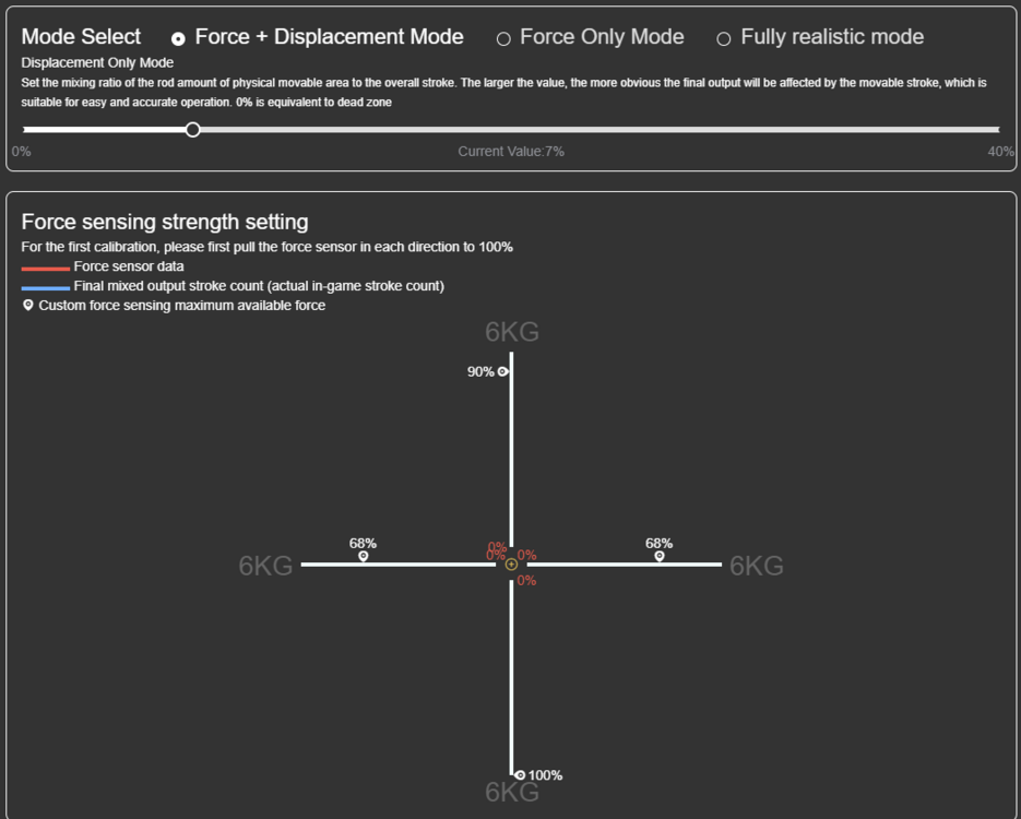 I recently procured an Orion2 MFSSB base and grip, having read through this and other threads about the potential to tweak the physical gimbal and software. I must say it was somewhat out of curiosity to compare to my previous indulgences which were second-hand purchases of an RS R3 Lighting (Meant be be lightning?) with a Warthog grip w/ custom angle-mount and an R3 Ultra with an RS Viper grip. In the end, with the following physical and software tweaks, the WW MFSSB compares nicely to the R3 Lighting, which I already prefer slightly over the R3 Ultra. First the physical adjustments: I 3-d printed Beezer's excellent insert for each axis to place around the bearing which makes contact with the force sensors. To do this, I loosened (but did not remove) the MFSSB pcb's, inserted Beezer's spacer, then re-tightened the pcb. This set the spacer evenly within the force sensor and still allowed for very slight movement in the center. Then, I installed all six spring plates on each axis, and used the set screws to center the axis while connected to the software. This took a bit of fiddling and adjusting, but it wasn't difficult or too time consuming. Beezer's spacers and the spring plates gave a nice feel with very slight movement around center and a nice, virtually undetectable (by feel) transition from center spring to force application. To the software tweaks: Even with Beezer's insert, there remained a deadzone if the MFSSB Config settings were left on "Force Only". Physically, I found this deadzone desirable, as it allowed what I perceive to be pretty realistic initial movement of the stick. To eliminate the dead zone and the oft-criticized software transition from displacement to force sensing, I came down to the following MFSSB Config and Dead Zone settings: null nullWith these tweaks, there is virtually no software flat spot or deadzone at either the center or in the transition from displacement to force sensing. As far as comparison of the three bases and grips now: I really like the WinWing F-16 grip. It has excellent build quality, and, much like my WW throttles, I love the switches (especially the trigger). I'm torn now between the R3 Lighting base and the WW base---they perform quite similarly. The RS software is outstanding, I have to say. The Ultra base---despite the rave reviews online, I find it a bit sponge-y, for lack of a better term. I prefer the firm feel of the Lighting and WW bases. I rather like the very slight, free movement in the center of the WW base now that the physical tweaks were done. Without Beezer's insert, the free movement on center was way too big. Can't thank Beezer enough for sharing the stl file of his spacer design. It is brilliant. The sum of the matter is this: If I were confronted with the choice of dishing out $1,100 to $1,200 for an R3 and grip shipped to the U.S. vs the $500 or so shipped for an MFSSB (with these physical adjustments) and the wonderful WW F-16 grip, I'd strongly consider the latter. Hope this is helpful.null