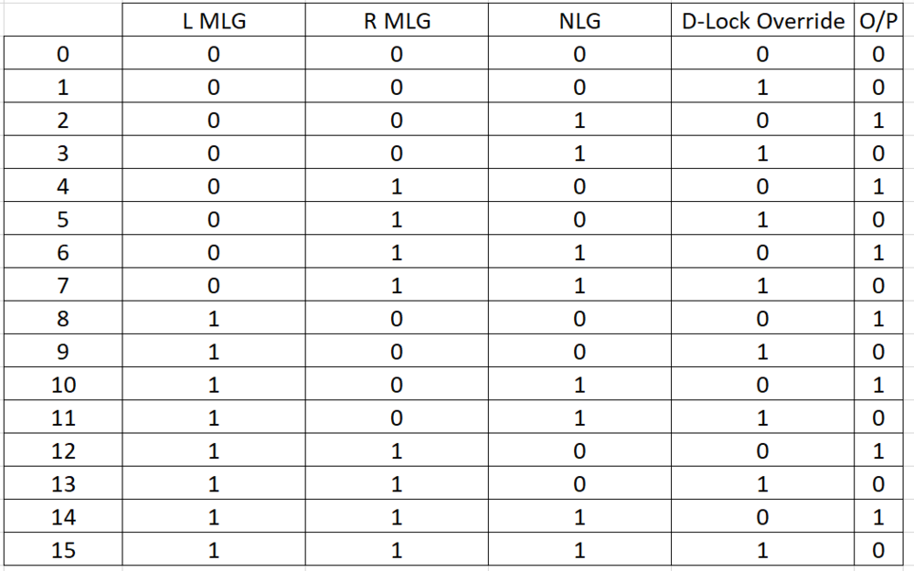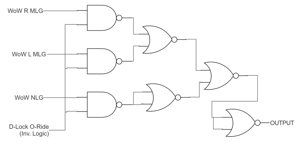 I'm also planning to use the downlock override button as part of the logic circuit. Whilst the downlock override button will be connected to a pin on the arduino, to send the signal to the game via DCS BIOS, I'll also use signal to override the WoW logic and remove the baulk pin. As the Arduino works by pulling the digital pin upto 5V and grounding it via the button, this logic is inverted if I take the 5V digital pin to the logic circuit (So 1 is 0V and 0 is 5V, if that makes sense). This is the truth table; The above table has 1 on the downlock overide being ACTIVE (i.e. pushed), where the actual d-lock signal is LOW. Working through the Karnaugh map, this results in a Boolean formula of OP = (RMLG x DLock') + (LMLG x DLock') + (NLG x Dlock') - where the apostrophe indicates the inverse signal. As previously mentioned, the d-lock signal is already inverted as a result of how the arduino pin works (grounding 5V makes it active), so we don't need to invert this signal after all! As a logic circuit, using one 74HC00 quad NAND chip and one 74HC02 quad NOR chip (which I have kicking around) looks like this; Clear as mud?! I could dick around and do some of it in code, but I'd need to use two chips any way. -