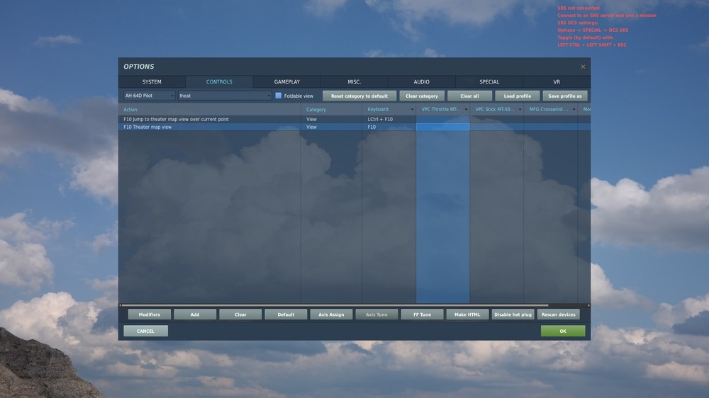 Just happened after purchasing and installing combined arms last night. I can open the LUA and verify my keybinds are in it, but when I go into DCS the keybinds for the throttle appear to be defaulted. I tried using a backup keybind LUA but it didn't change anything. I tried deactivating (Steam) Combined Arms but that didn't help. I don't want to try and just rebind my buttons. They're already bound and the file is right there. I think it has affected my UH-60 mod throttle keybinds as well. Every other module seems unaffected. I'm attaching a copy of my throttle LUA, a screenshot of one keybind example and a screenie from DCS to show that this keybind isn't present in game. Not sure what else to attach or if I'm posting this in correct place. Thanks fellas. VPC Throttle MT-50CM3 {9BA4A060-9EEC-11eb-8006-444553540000}.diff.lua