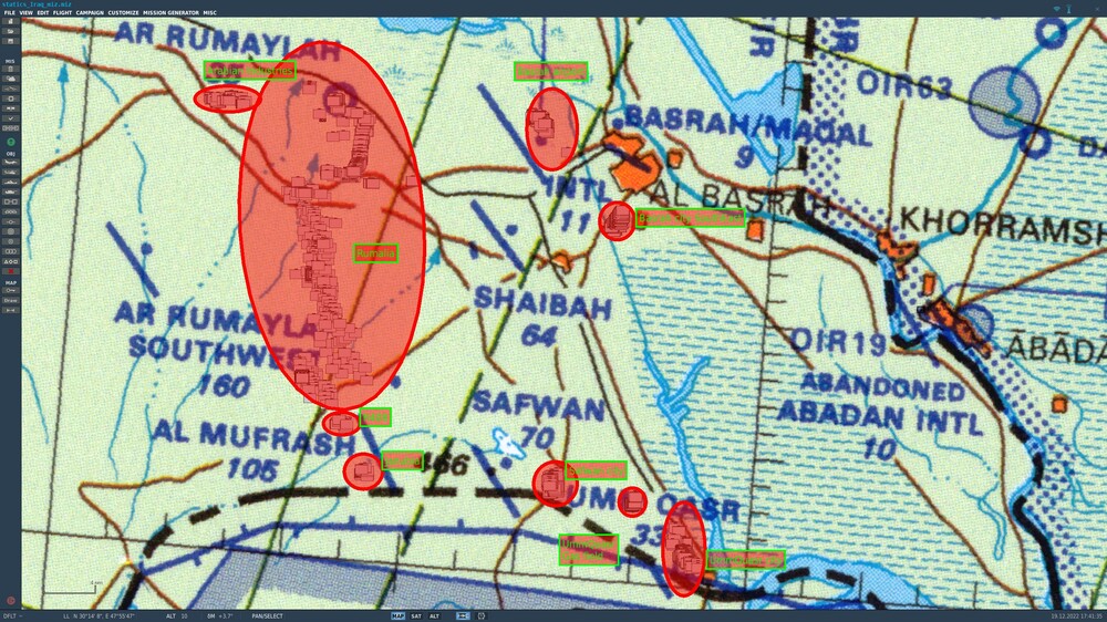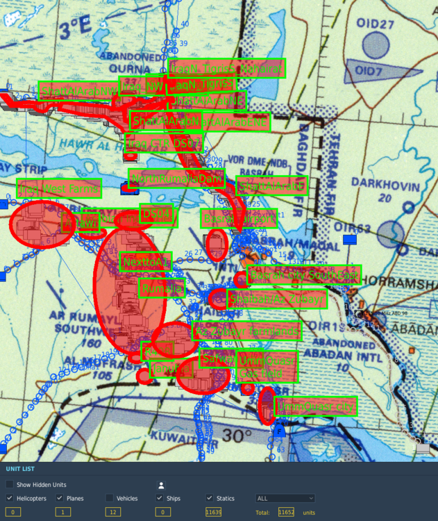 Part of the single-player F/A-18 campaign will include an improved Iraq, let's just hope the systems can cope. Of course I can only do stuff with static objects, but it it still way more than what's there right now. Additionally the main roads are also modelled (based on Google maps/DCS satellite map) and civ/mil traffic will flow with random connections, etc. I'm not saying it solves the issue, but it's something - I hope people will like it Btw. this is just for me to know what areas are covered already. Still #WIP . null