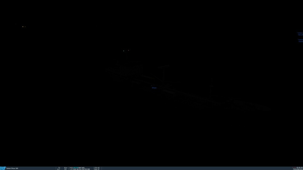 "Generic" lights, where the ground object is only indicated by a single light dot (many vehicles, some ships like Ivanov, Yakushev) go "off" when the object is closer than 0.3 nm. Way to test: put in one or more vehicles at night and look at it, while zooming out. Close up you will see the dark shape only to get the light when the camera is 0.3+ nm out. Also these "dot" lights are not ideal for ships as they display red-green and top lights when moving. A ship with modelled directional lights (ie. Elnya) and viewed from close-up (within 0.3 nm) will display the red-green lights, for ~0.3-0.4 nm both are visible, but beyond that only the "dot" at the middle of the object. At least for civilian vehicles there should be a headlight/tail light.