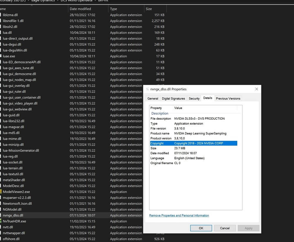 Thread bump, newer nvngx_dlss.dll 3.8.10.0 in latest nVidia 566.14 driver, I have extracted the dll and uploaded to Google Drive if anyone wants to try it out https://drive.google.com/file/d/1NNS843Vqem5xda8aqpTHVmwzCiWHdWZM/view?usp=sharing
