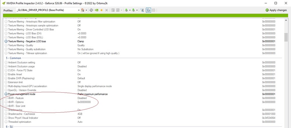 Thread bump, new version of nVidia Profile Inspector is out with more direct control of Rebar (options are inside the 'Common' section of the app) https://github.com/Orbmu2k/nvidiaProfileInspector/releases/tag/2.4.0.2 -
