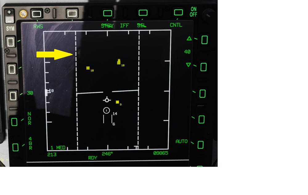Hello, last night i noticed that the scan envelope lines are missing in RWS and TWS mode. The radar scan zone is adjusted accordingly, indicated by the sweeping bar in the bottom of the radar screen, but the bars are not shown The radar scan envelope is only present on the HSD