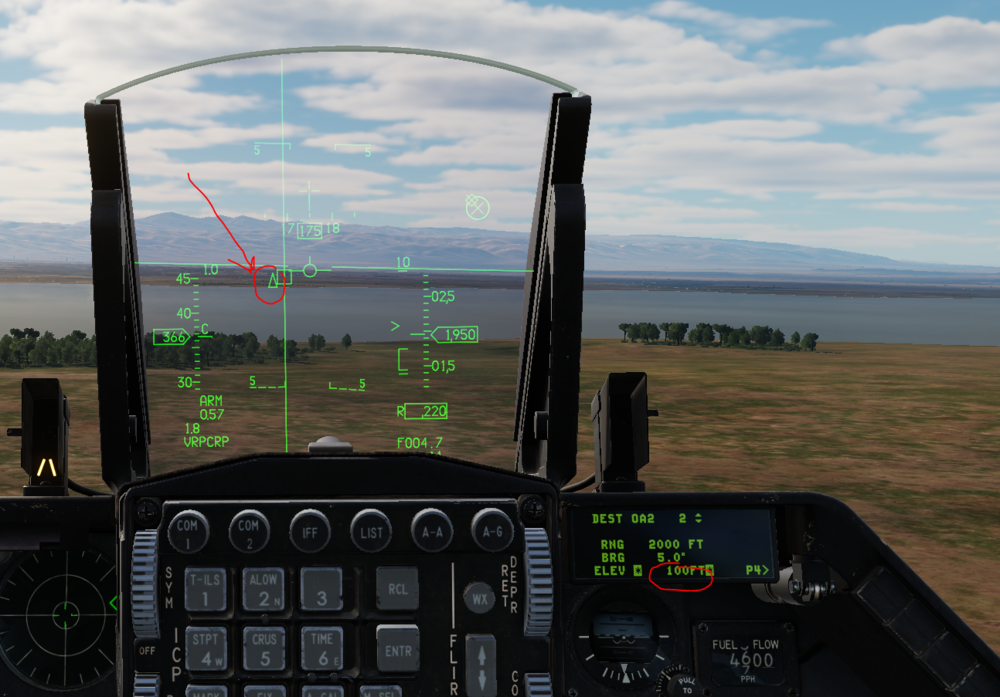 I also duplicated this error. I believe the problem is that when you enter popup data for a specific wp, say wp10, adn your current wp elevation is different, OA data shown on the HUD will be wrong. The only sure way to enter correct OA data is if you first select the current wp (STPT page) and only then enter the OA data to the same wp using DEST page. -