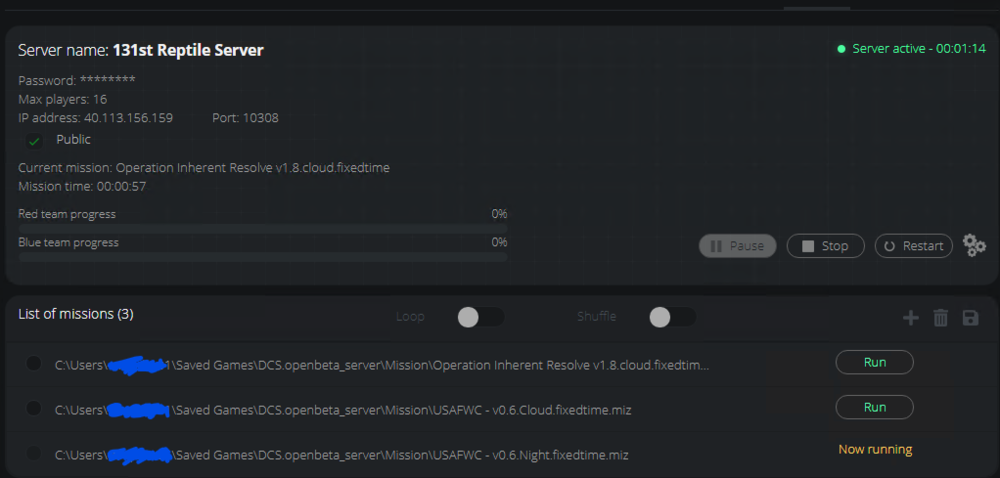 I got a strange behaviour on my dedicated server. Whichever mission I choose in the list, it is the "mission 1" (according to the numbering of mission list in optionsServer.lua) that is launched. (Look at the current mission on server details, and the one which is tagged as running in the server list...) If I modify myself the [1] mission in the list, to change the mission, the behaviour is the same. I cannot either remove line in the mission list. I can only add... I have fully reinstall the server, including the saved games, top start with a clean setup -> same behaviour. Everything was OK in last OB.