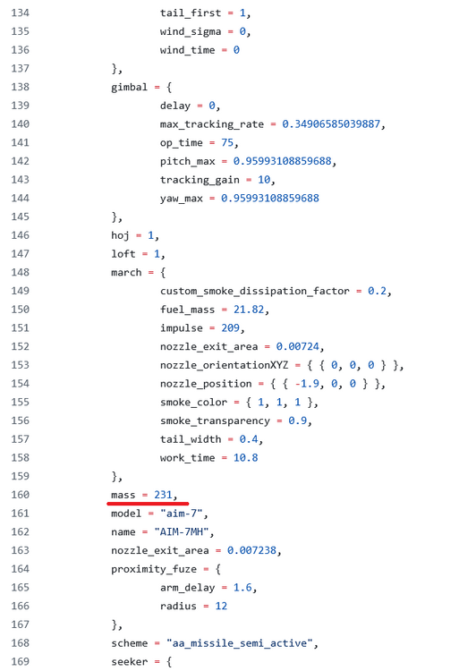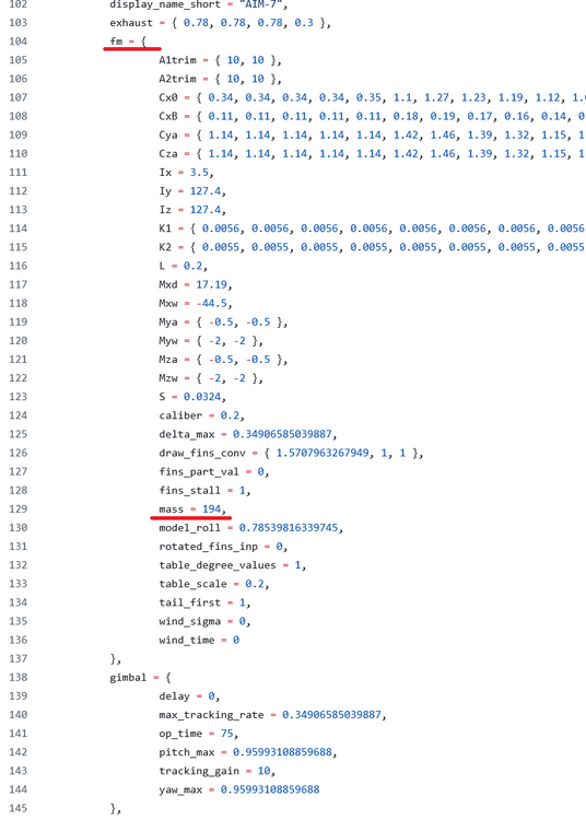 Guys, I have just realized that all these Aim-7s have run on the new API for some time. https://github.com/Quaggles/dcs-lua-datamine/tree/master/_G/weapons_table/weapons/missiles I can still see the value 194 in 2 places (client + server) for every missile variant E,F,M,MH,P even in the new definitions. And those params also changed exactly on 11.7.2024 (looking at the commit history) ... M.