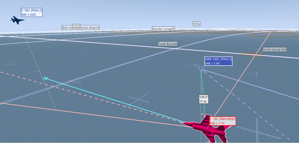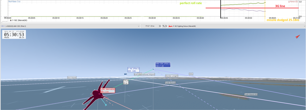 Oh no, it is not me disputing desync issue. Maybe English is the 2nd language for both of us? It's me disputing cheating allegations when performing a non-desync maneuver that does not lead to teleport, works in SP, works IRL, but to the untrained naked eye it may APPEAR as if it was the infamous whatever roll. That's why I'm arguing there are ways to distinguish between the two. And unless someone studied the difference, they have no way of telling, hence, they shouldn't accuse anyone of anything. I even wrote that if the missile was defeated from the side or from behind, it is a clear-cut cheating. Might wanna read that and get up to date. I read the whole history about 5 times, thank you very much. That's why I'm so happy that the legality of this move has long been established. I can see, however that for the AMRAAM this could still possibly lead to some desync in MP because of the extreme roll rate required to defeat it. However, in my example with the Aim-7, the roll rate is much less extreme and could never (in itself, with the rest of the AoA and Gs being conservative) lead to a desync. Hence, could it be a legal move in PVP MP ? What you and many others fail to see here, is that the issue never was in the proximity fuze. Don't get me wrong, I'm 100% for as much realistic values as possible and if literature says that 9m is too low, so be it. However, the guys proudly presenting and performing this maneuver, where doing it in a more... let's call it... random fashion. That's why buffing up the proximity fuze worked against their maneuver, but it doesn't work if you put some good old-fashion professional-level data analysis on the table. Because in that case, it is very little problem to send the AMRAAM long way off, creating a much bigger separation than even the current 15m fuze, hence, achieving the very same effect as described earlier with the Aim-7. You wanted it, you've got it. Haven't flown the F-16 in years, it is very sobering to feel how instantaneous the flight model seems compared to the red jets. Now that I've found the "resonant" roll rate, I have no problem creating a separation of >25 metres, so the proximity fuze doesn't activate. Look at that beatiful geometry and separation. That missile never had a chance. It's going completely another way. This is not about the fuze, rather about the timing, synchronization or "resonance" that I'm talking about. The roll rate is not random and it most definitely doesn't mean "push the stick all the way to the left", oh no. I am (on purpose) not telling the maneuver parameters here in order not to encourage its use. However, in the F-16, I can immediately tell you, I'd estimate my odds to be much higher than the 20% in the red jet, as this aircraft can maintain its energy throughout the entire maneuver, unlike the red jet (or the F5), which has only limited timeframe to perform it. Btw I verified the distance between the missile and my aircraft using 1000Hz export. It never got closer than 25.18m - distance was calculated from latitude, longitude and altitude of both myself and the missile. One try before that I thought the proximity fuze must be wrong, because it fired at 17m separation, which I felt I should've dodged. But after reviewing the geometry, indeed my wings were closer to it, so the fuze was right to go off. Once you find the perfect parameters, this is nearly trivial to perform it in an F-16 (imho). And thanks again for confirming the legality of this move. Now let's all explain that to the fox1 server owners so they don't get angry when we dodge their Aim-7s. Or maybe we should wait until they have the same chance against the R-27s, that would seem fair. P.S.: Great to know that AMRAAM has had realistic notch. Maybe now's the time to look at all the other missiles/radars? For us, who don't fly modern scenarios. Have a great day! -