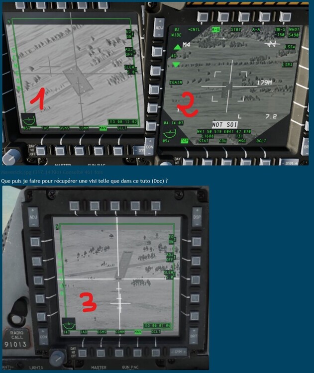Bjr, Ma question doit être un marronnier, mais je n'ai pas trop trouvé d'infos là dessus. Voilà, c'est simple; Comment arrivez vous à lire le HUD du A10 ( et d'autres avions surement) lorsque l'arrière plan est clair genre ciel ou neige ? Car vert clair sur clair ... Y a t il une astuce à part le bouton "Intensité" sur le front panel ? Insuffisant à mon avis. Merci pour vos conseils ;-)