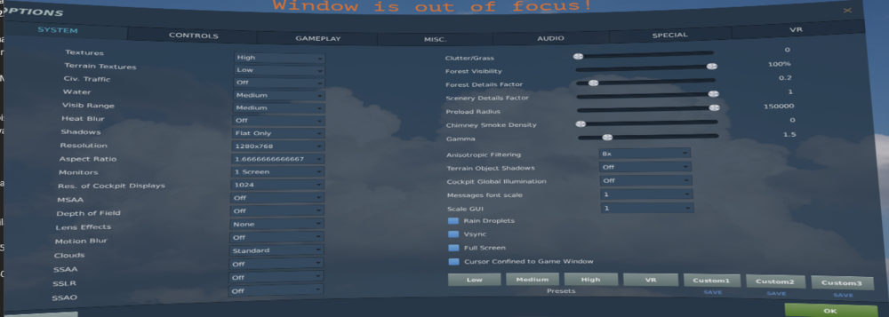 Big thanks for the tip! I tested this now and got the following results in a not very busy airport in MP. 1) About 39 fps visib medium 2) About 37 fps visib high + forest detail 100% Frametimes were more than acceptable (17ms) with no skipped frames, so i actually made also DCS SteamVR 100%. 3) About 36 avg fps. Lets see if i should tune down the visib to medium and instead increase the SS a bit further, and also how it holds up in a more crowded scenario. Does it actually sound 'normal' that with 3080ti I would only have such FPS? Funny though, im not really bothered by it apparently...