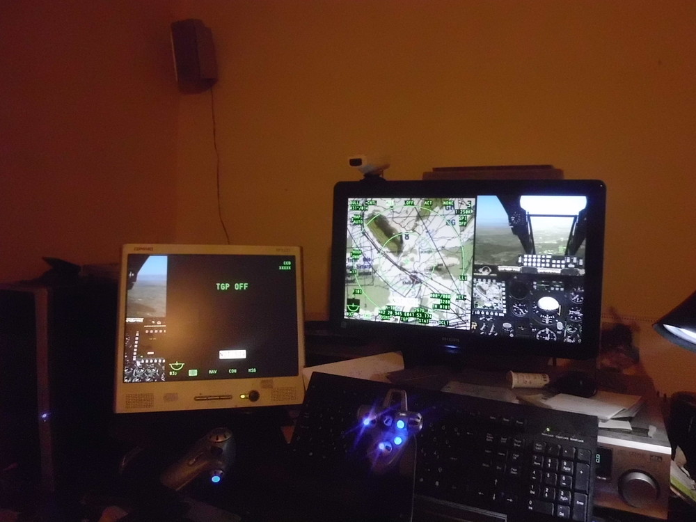 Hi! The problem is that I want to export in the left MFD is a 15" VGA monitor. primary monitor resolution 1366X768, 1024X768 resolution of the secondary monitor. both 60Hz operation.The attached picture shows the cockpit and the MFD shows details on the primary monitor, the black on the secondary monitor. the secondary monitor to the left MFD looks, but it lacks the part that is on the primary.I tried to set the "camera + leftMFD (on the right side). lua" file, but nothing changed. even when copied back to the original. lua files, you can also see this same picture in the game.I tried to set the "camera + leftMFD (on the right side). lua" file, but nothing changed. even when copied back to the original. lua files, you can also see this same picture in the game. What could be the problem? days since I read in the forum, but no solution has been found. my OS win7 64bit,video card ATI radeon HD4870. :helpsmilie: