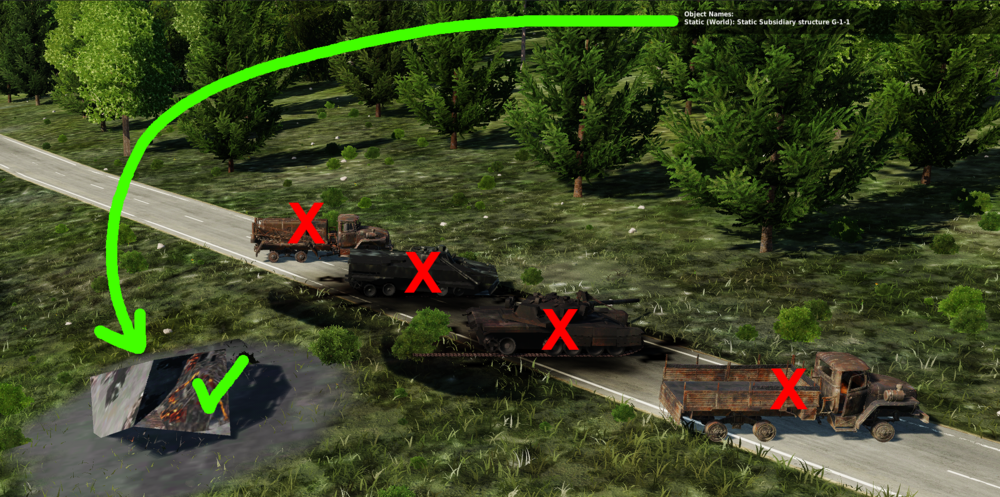 i need read a dead static units (for random smoke), but i can read only buildings, not static ded units like tanks, trucks.... with dead option. Can you help me plz? this is my lua local function listAllObjects() local objects = {} -- Iterate through all coalitions (RED, BLUE, NEUTRAL) for _, coalitionId in ipairs({coalition.side.RED, coalition.side.BLUE, coalition.side.NEUTRAL}) do -- Get all groups in the coalition local groups = coalition.getGroups(coalitionId) if groups then for _, group in ipairs(groups) do local units = group:getUnits() -- Get all units in the group if units then for _, unit in ipairs(units) do if unit and unit:getName() then table.insert(objects, "Unit: " .. unit:getName()) -- Add unit name to the list end end end end end -- Get all static objects in the coalition local staticObjects = coalition.getStaticObjects(coalitionId) if staticObjects then for _, static in ipairs(staticObjects) do if static and static:getName() then table.insert(objects, "Static: " .. static:getName()) -- Add static object name to the list end end end end -- Use world.searchObjects to include static objects marked as "DEAD" world.searchObjects(Object.Category.STATIC, { -- Search all static objects id = world.VolumeType.SPHERE, -- Search within a sphere params = { point = {x = 0, y = 0, z = 0}, -- Center of the search area (world coordinates) radius = 1000000 -- Large radius to cover the entire map } }, function(static) if static and static:getName() then table.insert(objects, "Static (World): " .. static:getName()) -- Add static object name to the list end return true -- Continue searching end) -- Create text to display local text = "Object Names:\n" for _, name in ipairs(objects) do text = text .. name .. "\n" end -- Display the text in-game for 10 seconds trigger.action.outText(text, 10) end -- Execute the function listAllObjects() null