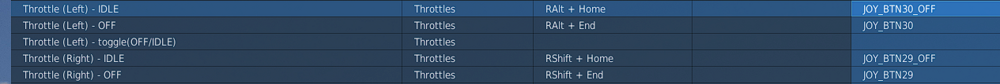 This is how you want to bind the Warthog Throttles if you want to use the Cutoff detent. Pulling it over the detent will place the MiG throttle to OFF, bringing the throttle back forward to IDLE will place the MiG throttle in IDLE.