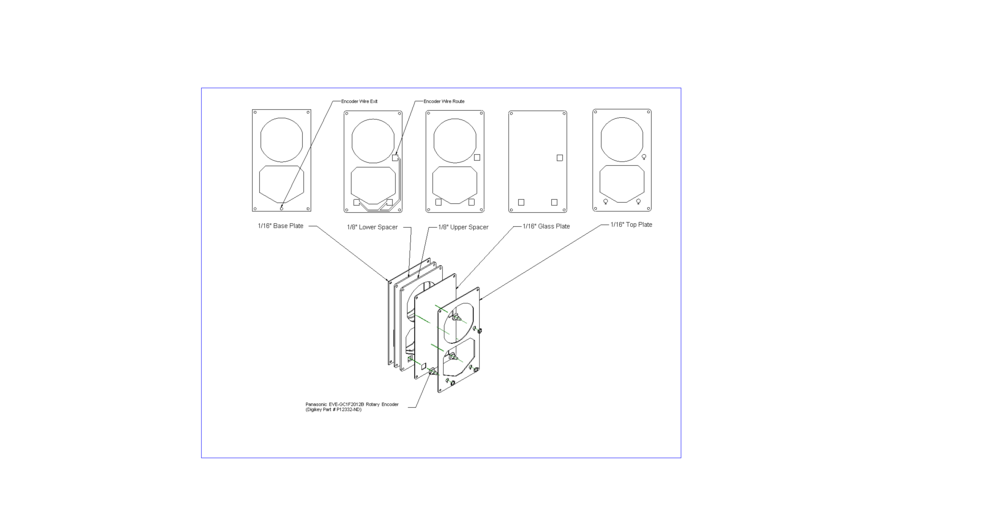 Here is the bezel I designed. It's supposed to house three Panasonic EVE-GCF2012B encoders. It's designed to be cut out of 1/8" and 1/16" black acrylic and one piece of 1/16" clear acrylic. If you don't want to have the clear windows just cut upper spacer twice. Once in 1/8" and once in 1/16". Glue the spacers and top plate together, paint if desired and then wire and mount the encoders. Fasten to MIP holding base plate and spacer in place with screws. EFIS Bezel.zip