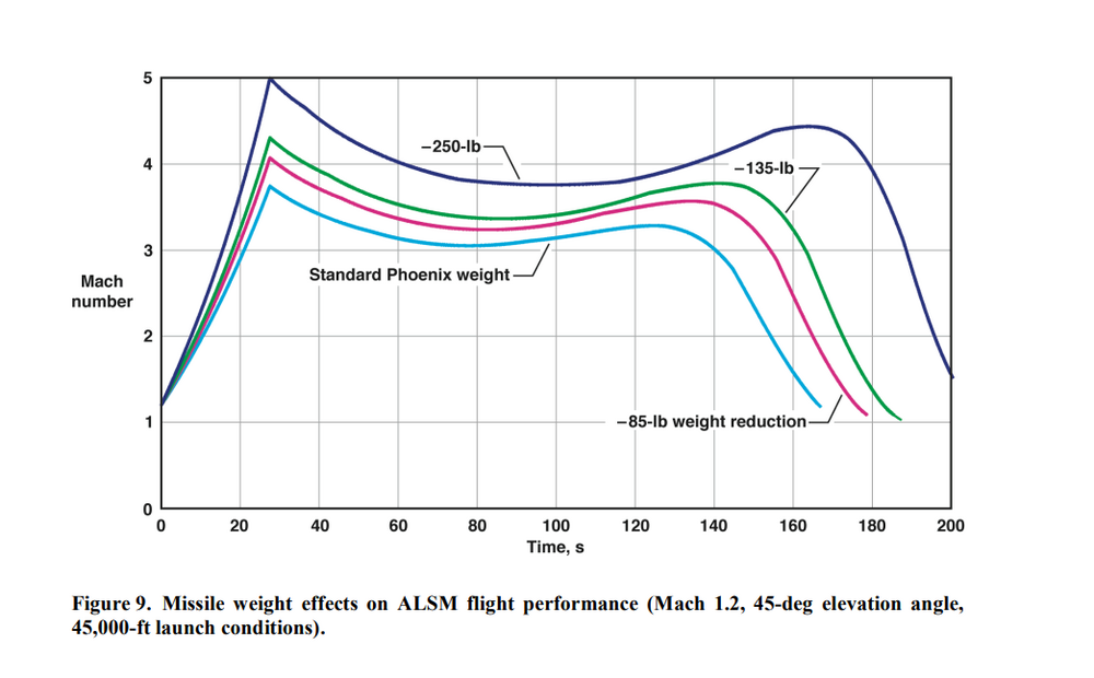 @Gareth Barry @Katsu The test configuration was significantly lightened - Yes they never fired it... and their data is about as good as anyone here can ask for. As much as I personally would love the AIM-54 in game to be better. I think the Kinematics are probably pretty close... The Guidance is a major culprit of the poor performance, id wager. hey have a couple charts for performance. One is 45kft Mach 1.2 45 degree launch. The other is 45,000ft Mach 2 launch. Fire up the mission editor and test it, post tacviews. I'll give that a shot later. null 171793main_fs-093-dfrc.pdf