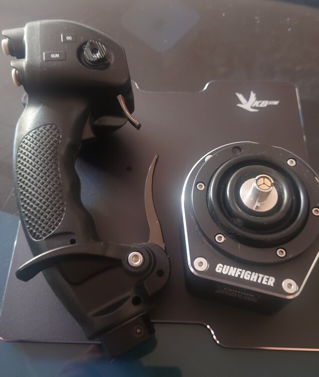 Have make an Upgrade, so a new Pilot wanted! For Sale my VKB Gunfighter MK2 with Modern Combat Grip (MCG) non Pro. without Z Axis. (Upgradable) + extra 100mm extension Full Set with the big table baseplate, add. Cam Profiles, springs from 10 to 50, blackbox, cables, original box etc. 200euro + shipping (for Germany free) Stick is in good and working condition, little bit dust, thats all.
