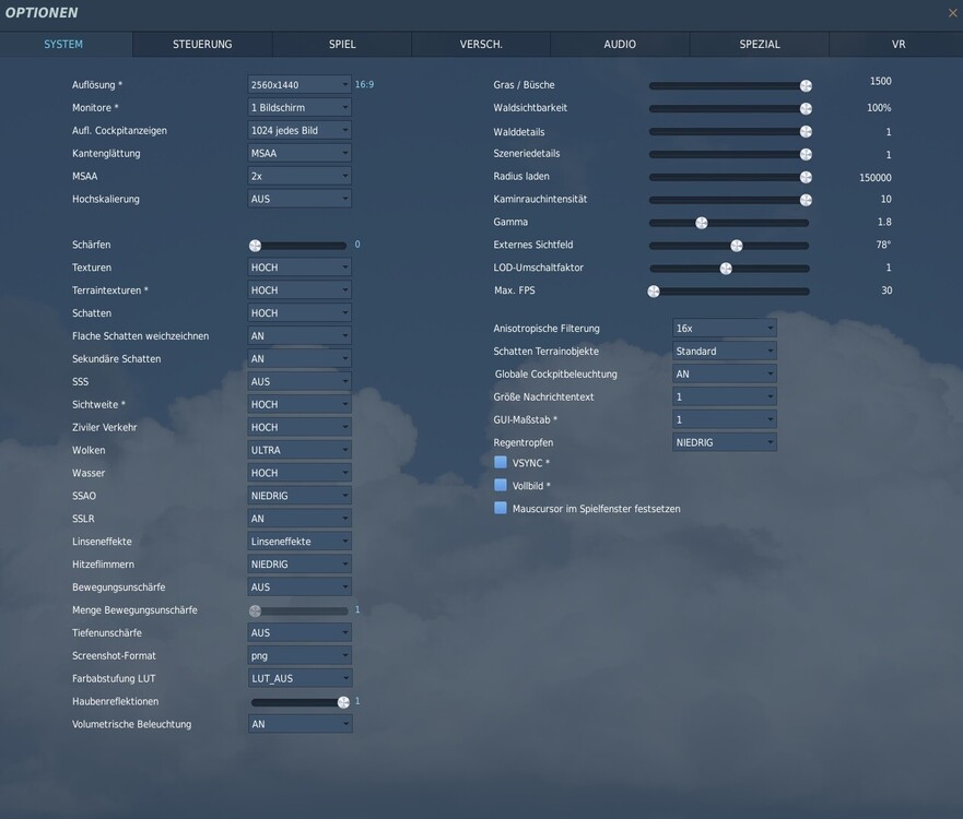 Hallo, ich hoffe, Ihre Zeit hier hat Ihnen viele gute Eindrücke vermittelt - vor allem außerhalb der Kaserne Ich habe beim Militär keine Flugzeuge geflogen (erst später virtuell am Computer) sondern im Gegenteil versucht, Flugzeuge abzuschiessen: im Gepard-Panzer. So here are the options of three modes that might have something to do with the graphic depictions. It’s all the default settings. Is there something to change which may have an effect? I already switched the „Anti Aliasing Method“ to all 3 possibilities. - - But changed it while DCS was running. Or do I have to exit and restart DCS each time to activate these changes? -
