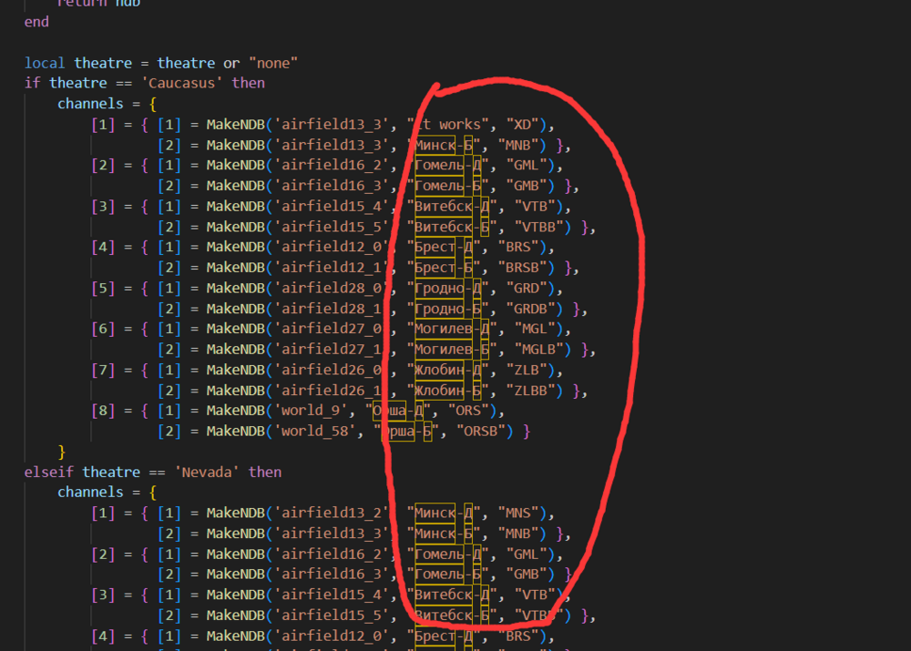 Sochi doesn't work for me either,odd...but for some airport it works,(I tried NDB in Maykop-Khanskaya) But if u don't mind modding the game file a bit,I find a way to make the plate displaying things u manually entered. First u need to delete line 152 and line 166 from ARK_MAIN_page.lua,but this file seems can't be packed into the .miz file,so modding the game file is needed. (those 2 controllers seems keeps overriding what u entered from ark.lua using their own logic.) And here is my ARK.lua,u can pack it into the .miz file without touching the original game file. ARK.lua in my ark.lua,u could change the name and callsign(in red circle) to what ever u what and the plate in cockpit will display them. for the beacon_id:(airfilexx_xx or world_xx),u can ignore them,I haven't figure out how to use them yet,and they don't seems affect anything for now To edit ADF frequencies,use mission editor,change them to whatever u want(but no automatic update for the the ADF plate after modding),then u can manually change beacon "name" and "callsign" in my ark.lua to match them(or anything u want to be displayed on the plate) .(also u can try adding more functions to it,or merging those theatres into one section) For Syria,I guess it's not called "syria" for lua variable,as "elseif theatre == 'Syria' then" doesn't work for it,but when I change that to "else",things start working. -