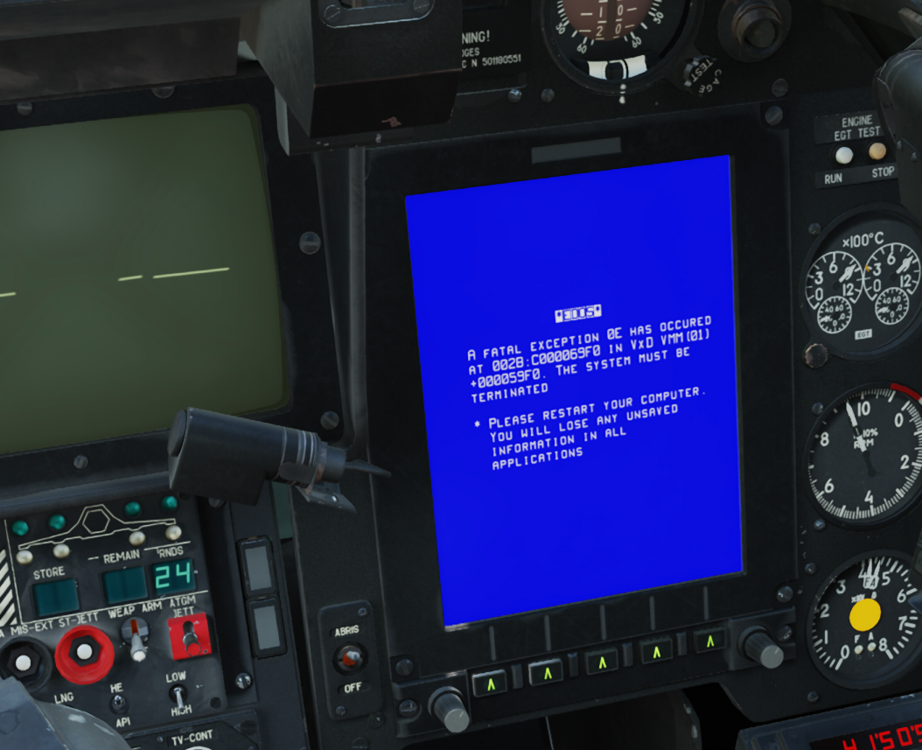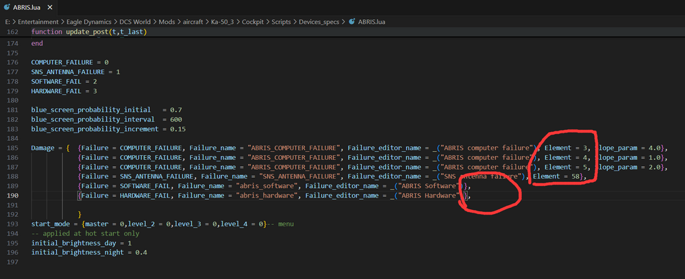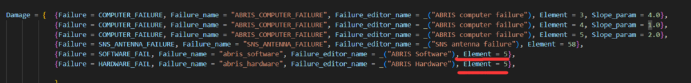 Hi. This is a hidden one,trivial thing,nothing really hurt. also I think I find the potential cause of it. There are lots of failures you can set for ka50 using mission editor. But those 2 failures:ABRIS SOFTWARE/ABRIS HARDWARE,seems broken. If u set them in ME,then it won't trigger the failure in game. track.....(I set ABRIS software failure in ME,within 1 min,100% probability,but I guess in the track nothing really happened,the failure is not even displayed in the after mission report) mission editor ABRIS failure settings .trk I checked \DCS World\Mods\aircraft\Ka-50_3\Cockpit\Scripts\Devices_specs\ABRIS.lua and other lua files. Looks like every other failure has an "element" assigned to it,but only those 2 don't have them. I tried adding "elements" to them and things suddenly start working. after adding "elements",abris software failure triggers a blue screen,also hardware failure works too. It works okay in old dcs world version without "element",but I guess some updated new core system changed it,looks like now an "element" is always required? I don't know what exact those element are,(maybe linked to DM? I don't want get a blue screen every time when hit by7.62 bullets) ,so better let the team know and find a suitable fix.(when free of course) Thanks in advance. (sorry for reporting so many things,I guess I'm addicted to this heli recently...fly it a looooot. nice sim product) mission editor ABRIS failure settings .trk
