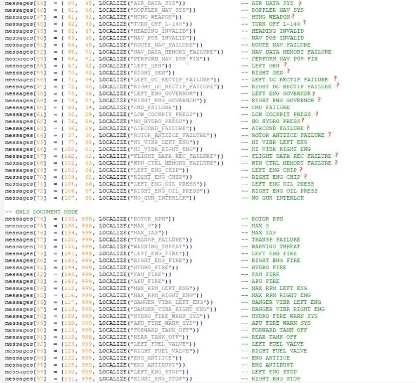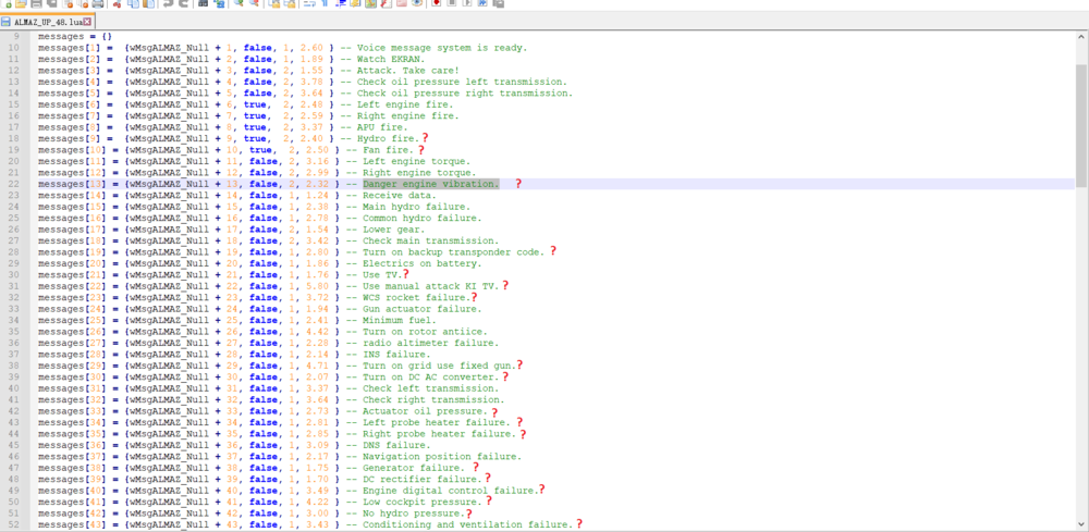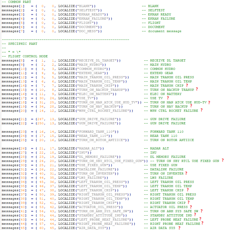 7. Hi... Now in the sim,the "Danger Engine Vibration"("Опасность вибрация двигателя") EKRAN message won't be read out by Batty,only "Watch ERKAN" is read out,even If the voice message emergency on is set on the center bottom panel,still only "Watch ERKAN" is read out. (also all other voice messages related to those red warning lights at upper left corner of the front panel,like engine turbine overspeed ,L/R eng/APU fire/Warning under attack,they just directly be read out by Batty and don't require the emergency message switch set to on,so I guess the same should also apply for the "Danger Engine Vibration") edit:I just find an old video of engine failure in the DCS Black Shark which was recorded 9 years ago,in that video,after the engine vibration warning was triggered,the Betty just directly read out ("Опасность вибрация двигателя"(Danger Engine Vibration) (and seems didn't require the voice message emergency on switch set to on.) Starting from 00:18s (game lua file of Batty) (By the way also another thing,maybe not a bug but looks odd to me,the ERKAN text messages >>>this one <<< for high engine vibrations only appear when the engines actually get damaged.When you using the engine vibrations test button on the rear panel,the red warning lights and the "watch ERKAN" message will show up,but the ERKAN won't display any message on it)(this is also included in the same track) Ka50 HI VIBR ENG.trk