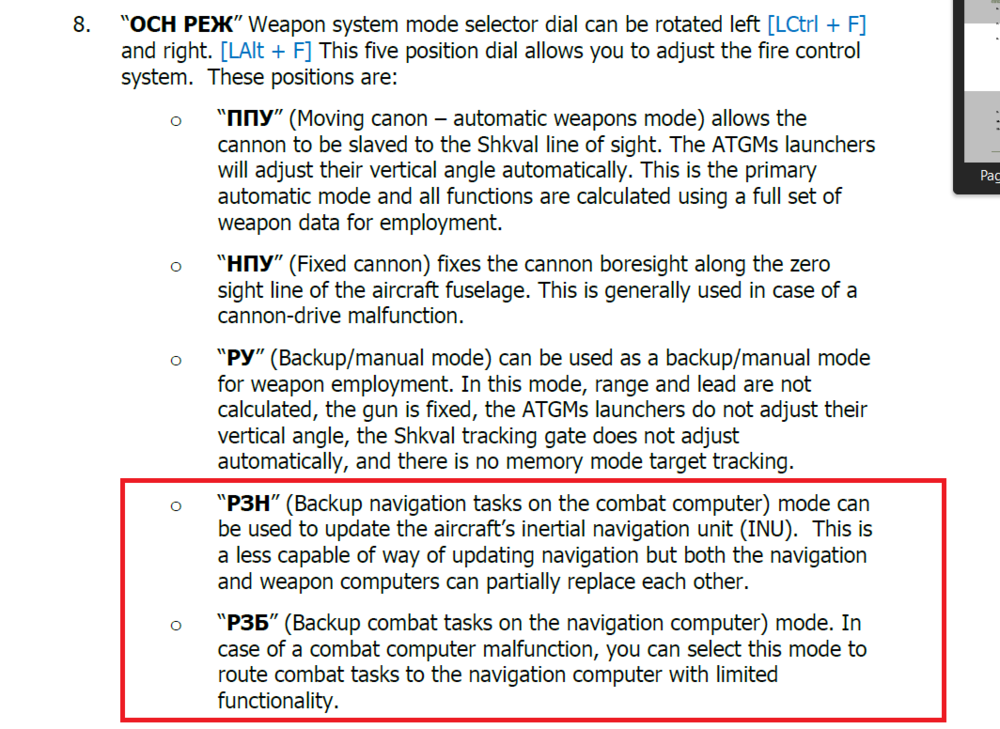 23. I searched the Ru forum using the google translator,since the DEVs are more active there. There was someone asked about the missing switches/functions like cockpit ECS controls,ampere volt meters,BIT/test switchs and optic filter for the Shkval,back in January 2022... And they answered "no" for the cockpit ECS and optic filter for the Shkval page 43 and page 44