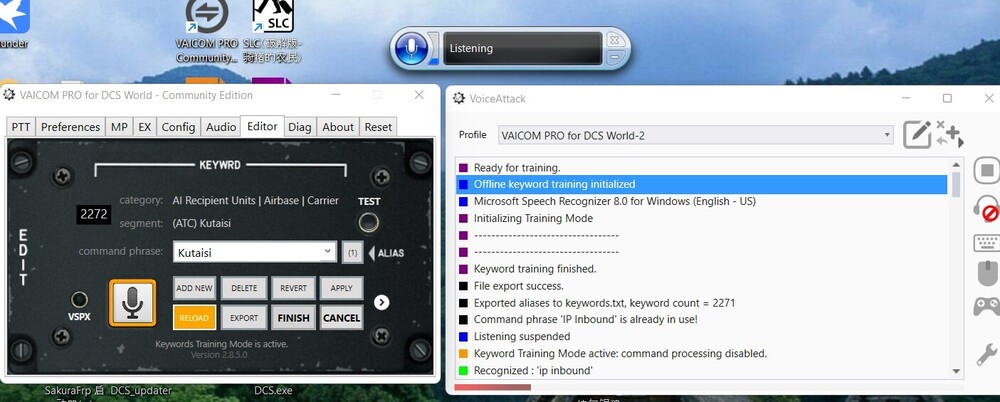 First time using this plugin as you see , the number of my keyword is 0 ,why ? I have installed vaicom correctly and imported the VA file “vaicom pro for dcs world“ In this case, my vaicom didn't work at all