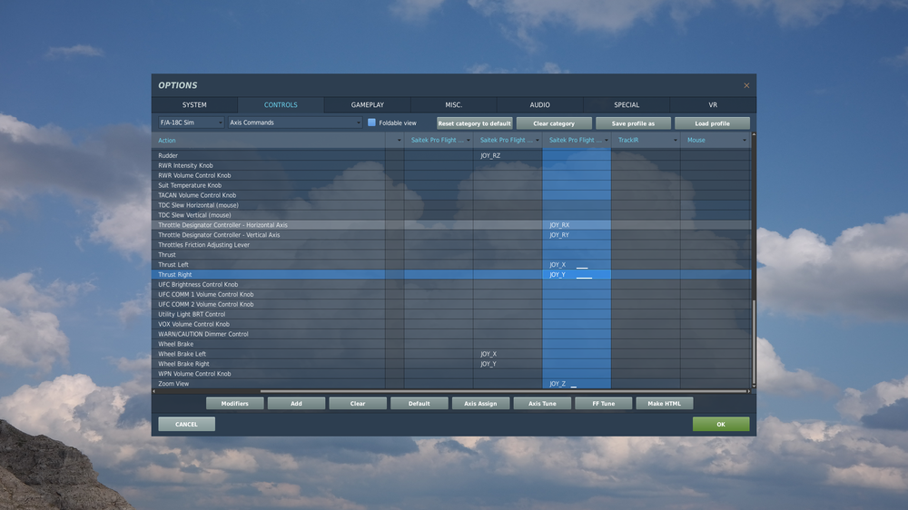 Wonder if anyone else has this problem with their X-56 throttles. When throttles are joined by pushing in the slider clip on the side of the throttle, the left and right throttle input in DCS is even. However, when I split the throttles by pulling the clip out, the input is not even. That is, when the throttles are flush next to each other, the power of the engines are slightly offset which causes my plane to tilt. I tested this in the Axis Command control options and found something very strange. When the throttles are joined together, the input indicator bars for right and left move evenly. However, the moment I unclip the slider the right throttle drops by about 5%. I've attached screen shots to show what I mean. The below image is when the throttles are joined: Then when I pull the clip out to separate the left and right, the right loses input: Really hoping to fix this because I'm getting better at Hornet carrier landings and I've been experimenting with "walking the throttle". This difference in power input makes it almost impossible. Thanks.