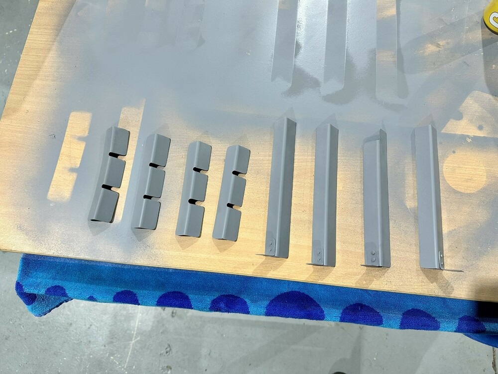 Back in the workshop this evening and the boys gave our new (to us) guillotines some much needed love. Both units are now freely moving and have been given a first-pass clean-up. We tested cutting some .30 thou sheet and both gave a good clean cut. The green unit will need some spring return units fabricated, which we hope to get done this week. Got yet another interior panel cleaned up and refurbished, along with a range of switch covers from the left hand console. These will receive a couple of coats of clear and will then be put on the racking, pending re-installation into the cockpit.