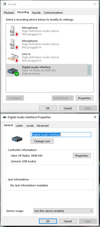 Does anyone have an advice on the mic of the index? I cannot get windows to recognize the mic although it is shown in the recording devices. I already tried changing the audio settings in SteamVR but that didn't help.