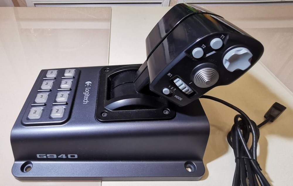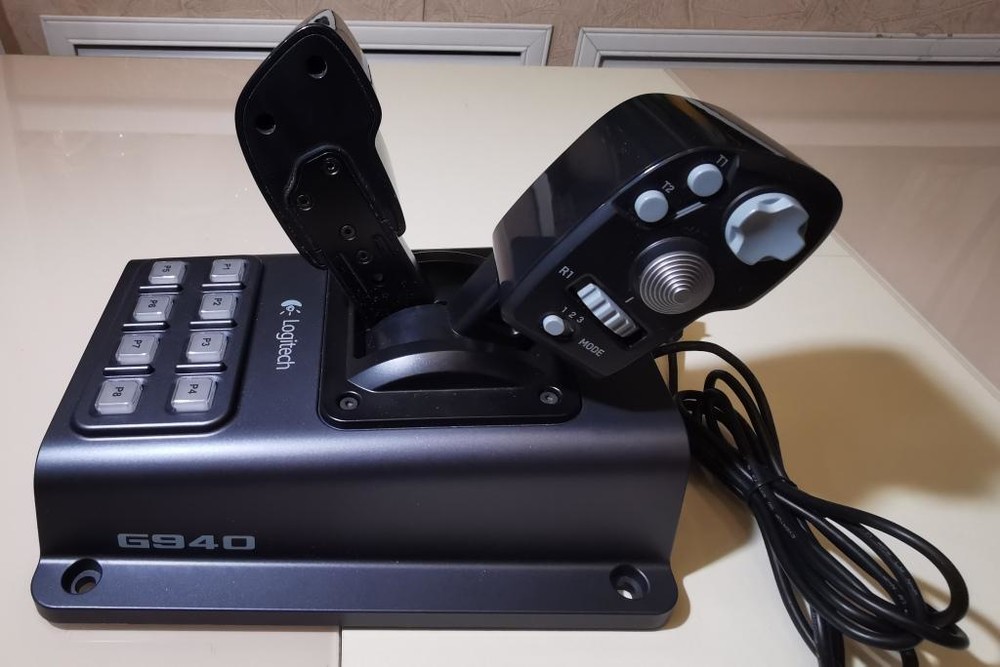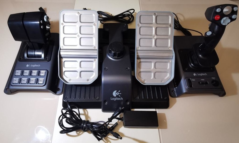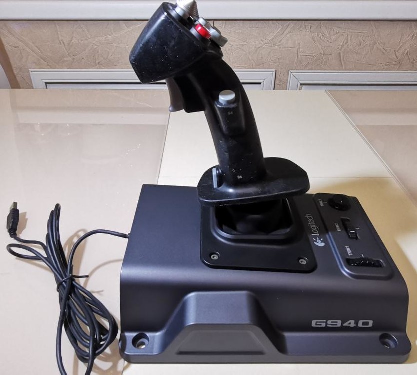 Продам комплект: джойстик, РУД, педали Logitech Flight System G940 б/у, состояние нормальное (см. фото), полностью работоспособный, датчик положения руки на РУС закрыт, покрытие на РУС от времени стало липким, можно снять спиртом как я это сделал на РУД, до РУС руки не дошли смыть. Комплект не разбиваю, покупал для себя. Цена 10000р. Пересыл за счет покупателя. Причина продажи-переход на другой девайс.