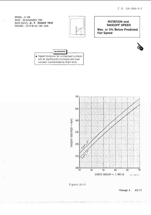 The base for my rotation speed calculation within the program is the takeoff airspeed chart from TO 1A-10A-1-1 (Screenshot). The correction value for rotation speed is at the moment -8 kt. So if you are looking for your actual weight and your flap setting (0° or 7°) you will get a specific takeoff speed and minus 8 knots that is the rotation speed. After testing in our squadron we decided, that 8 knots is the best correction value for the A-10C in DCS. The temperature is not taken into account for this calculation. These values for the calculation are stored in an excel-sheet called “DCSData.xls” which is read at program start.