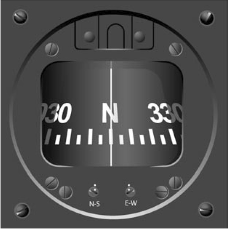 The compass doesn't have a lubber line. It should unless we are saying that it rubbed off or wore away. Generally (at least in the civilian world) one of the aircraft instrument maintenance items is to make sure the lubber line is visible and to repaint it if it is not. Technically an aircraft isn't VFR certified if it doesn't have a working compass, which includes a lubber line for reference. Our F-14B is currently not airworthy technically. :P