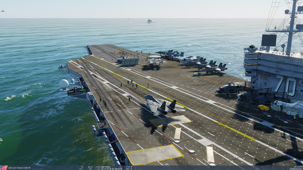 I was able to add the animated deck crew from my SC module to the Stennis. It was some lau file editing, mainly just paths, and copying files to saved games locations, etc. A couple builds ago I was fooling around with a CVN-70 mod from the Stennis and found out the crew can be added. I was able to get Cats 1, 2 and 3 working correctly but 4 was buggy, only the AI could use it. When the Forrestal gets out I'll revisit that to see if it will still work.
