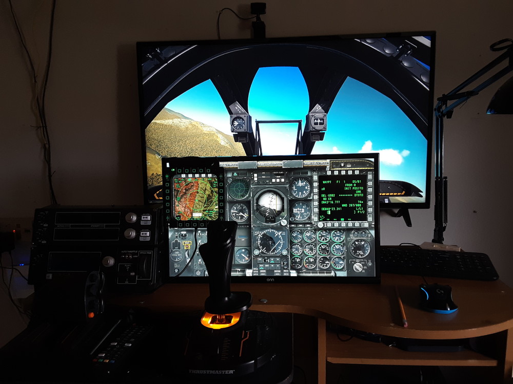 All it took was the Thrustmaster Cougrar pack, a 12-inch monitor I got on Amazon, and a simple monitor setup lua file and flying the F-16 became reealllly fun.