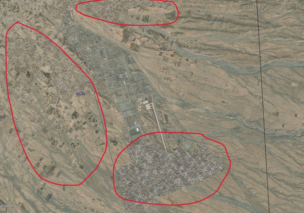 Things to see (please contribute)R0NiN replied to VR Flight Guy in PJ Pants's topic in DCS: Afghanistan Things I was hoping to see, but didn't- my home away from home for 12 months in 2009 was not modeled at all- FOB Shank. There are buildings all around, especially Pul-i-Alam (the nearest "city"), which is not accurate to IRL. The FOB is there- at least sat pasted data, but no 3D objects rendered, and as of 2014 was one of the top 5 largest bases in RC East. Pretty disappointing considering it had multiple helicopter points, a C-130 rated runway, and housed an artillery battery, hospital, and logistics supply point. The red circles show buildings that do not exist. The entire base is flat on the terrain and features zero buildings. Here is the Google Earth image of the same place: Notice minimal buildings in the surrounding areas. I hope they fix this, as there were a lot of really interesting operations that came out of this area and my unit built up this base when I was there. null