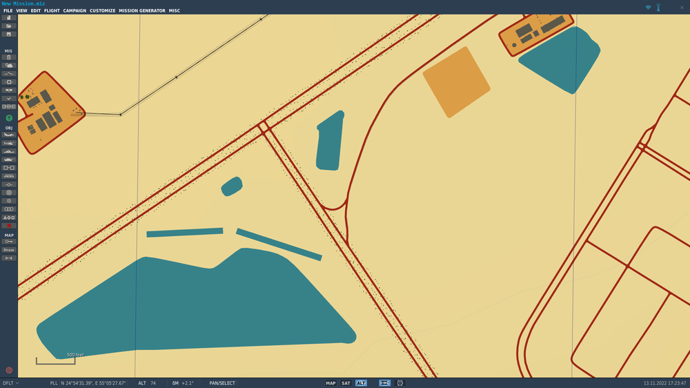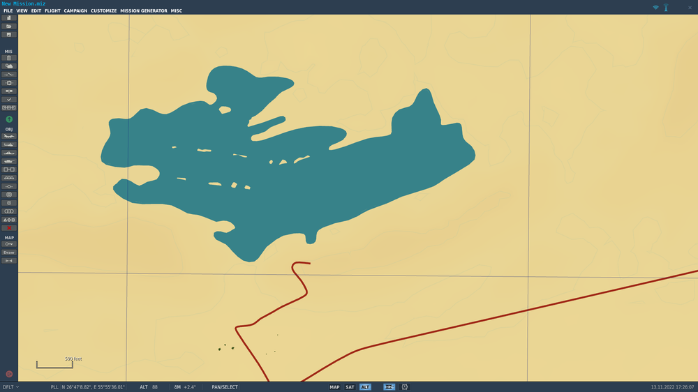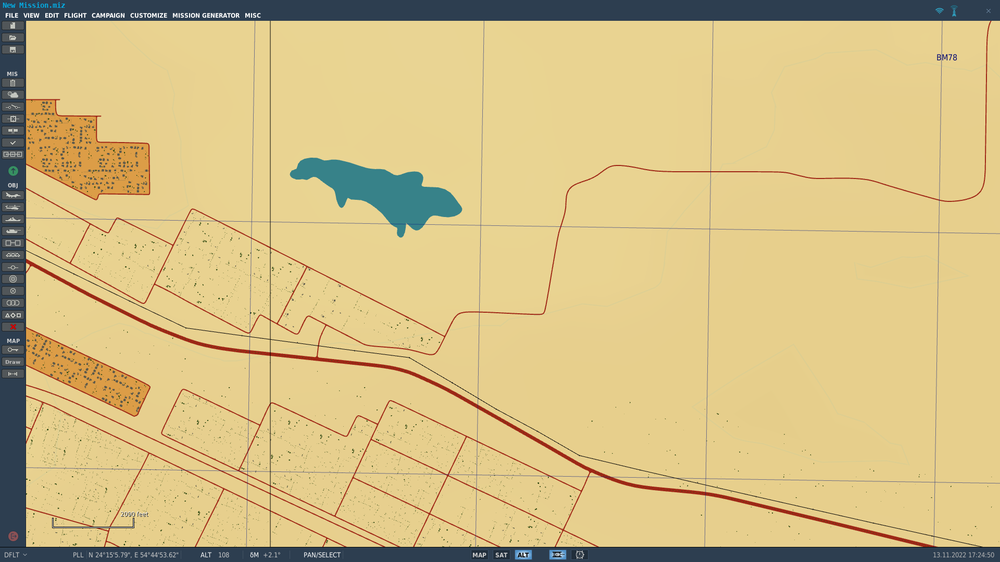 There are several small lakes and water reservoirs across the map, that have an invisible wall of ~15ft, sticking out of the water near the shore. This is really deadly for helos flying low, to avoid SAMs. Got some screens of a few of them, not the easiest to find and grab as the walls seem to be only centimeters thick. Edit: The mouse cursor is not visible on the screenshots, my bad. However from the coordinates you can see, that I barely moved it. I also moved it inwards to the lake, so the altitude should be even lower. Some of the pics are in reverse order, wall first then the lake.